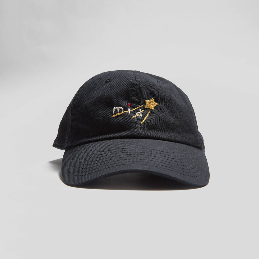 流れ星のような黄色いモチーフと、“mid”のロゴが、自由な線と揺らぎを伴って綴られています。