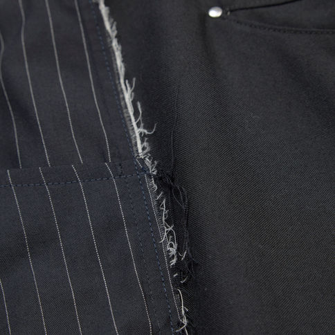 前後で異なるウールトロピカルを使用し、視覚にほのかな違和感を与えるスラックスです。